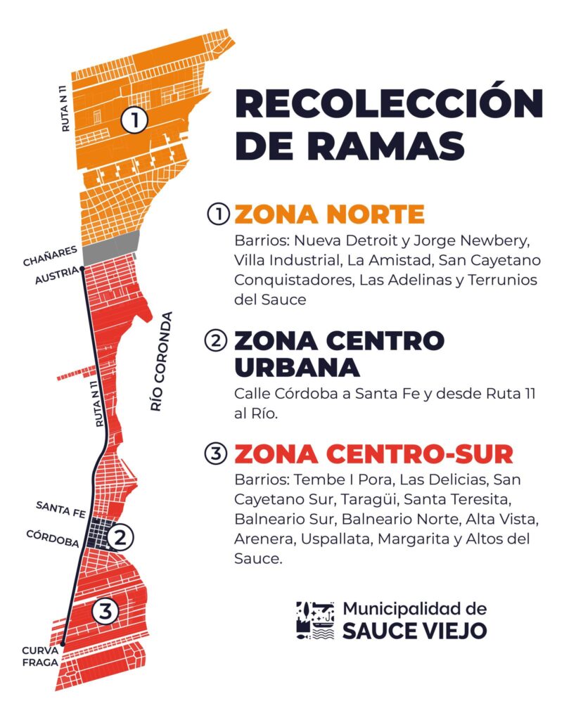 La Municipalidad de Sauce Viejo, a través del área de Obras y Servicios Públicos anuncia el cronograma dispuesto para todo el mes de noviembre. Se recomienda sacar las ramas teniendo en cuenta este calendario para que las mismas no estén tanto tiempo en la vía pública.
