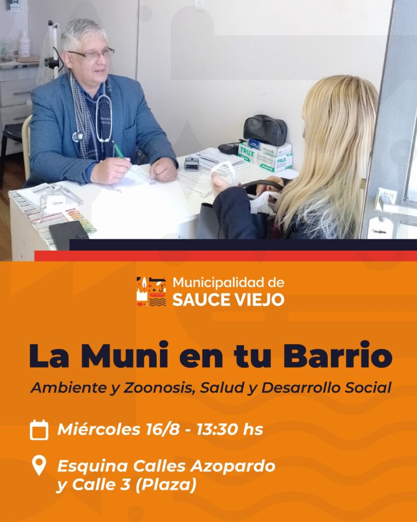El miércoles 16 de agosto en Azopardo y calle 3 (plaza) se instalará el dispositivo descentralizado de la Municipalidad de Sauce Viejo.