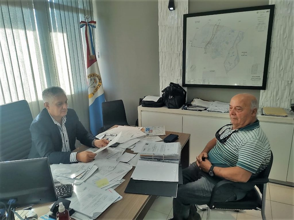 El intendente de la ciudad de Sauce Viejo, Mario Papaleo, se reunió con el representante de OICSA Construcciones, empresa adjudicada para realizar la obra del programa “Santa Fe + Conectada”.