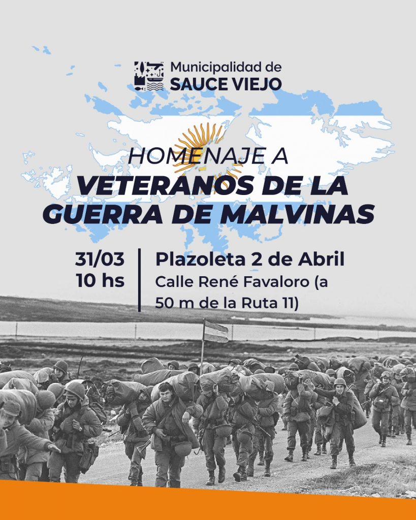 Con motivo de la conmemoración de los 41 años de la gesta de Malvinas, el Gobierno Municipal, a través de la Dirección de Cultura, invita a los vecinos sauceños a la ceremonia de descubrimiento de la placa recordatoria.