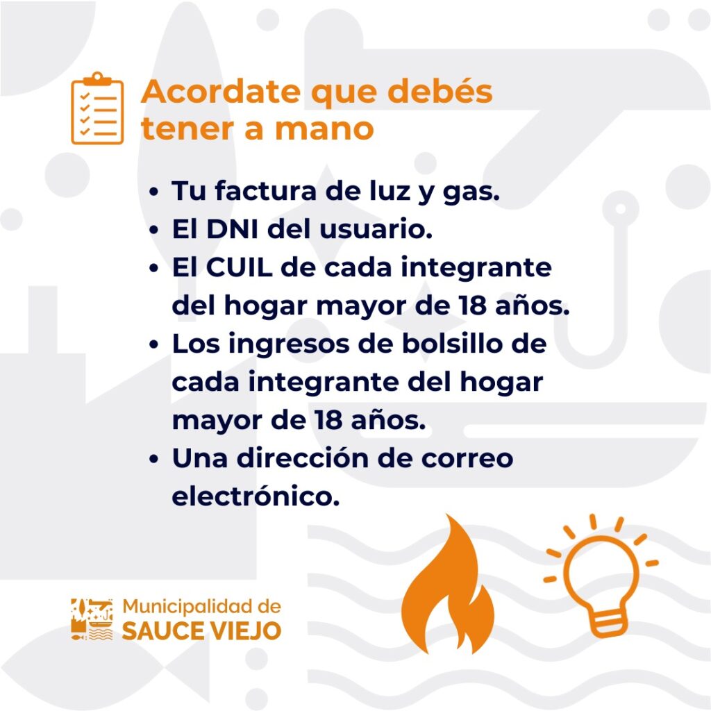 SUBSIDIOS DE GAS Y LUZ: HASTA EL 31 DE JULIO TENÉS TIEMPO DE INSCRIBIRTE / Actividades y Servicios / Por Pablo Bellafronte Desde la Municipalidad de Sauce Viejo te ayudamos con el paso a paso para completar tu solicitud en el RASE Compartilo en tus redes